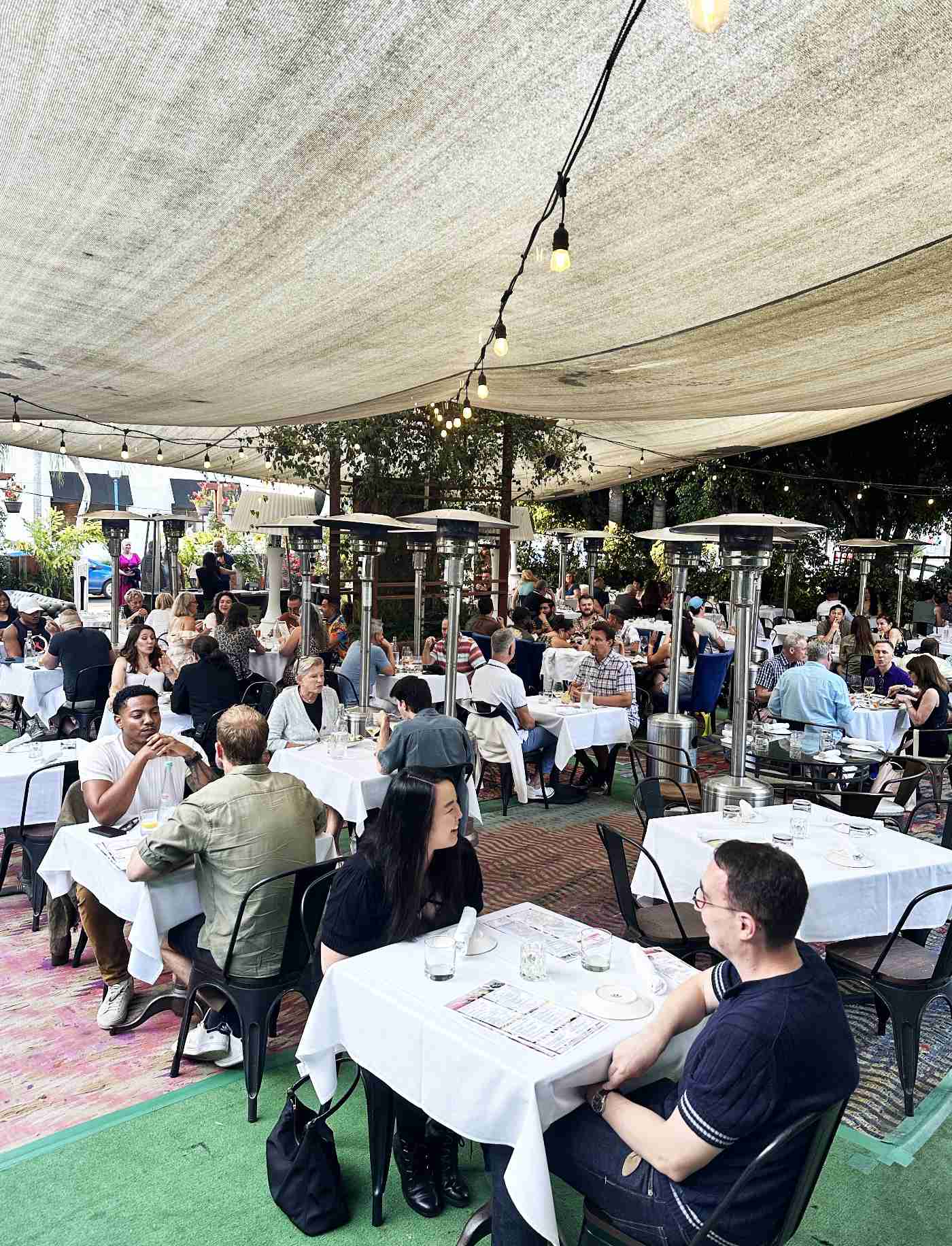La Boheme’s outdoor seating area continues the theme of a magical garden. Located beneath a tent, the space features cozy couches and is surrounded by lush greenery, offering a serene oasis in the bustling city. This setup not only enhances the dining experience but also provides a perfect backdrop for evening cocktails and intimate dinners under the stars.