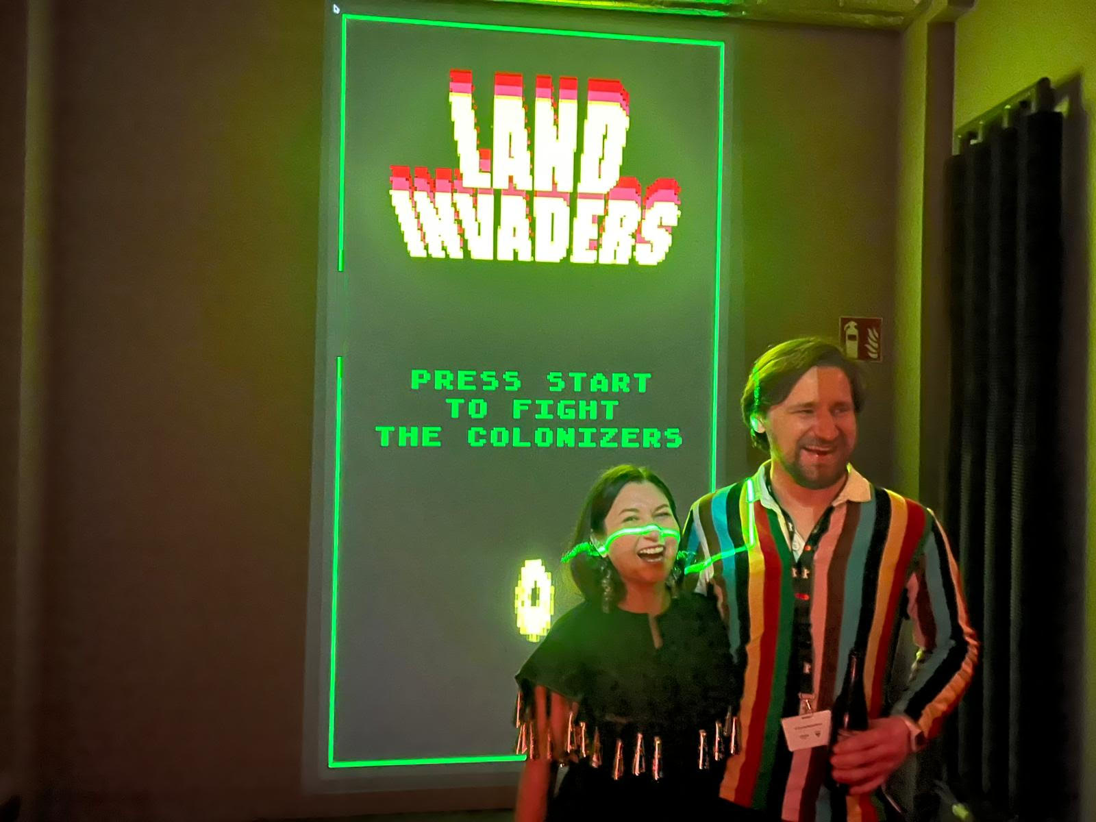 Berlin’s international arts community witnessed a groundbreaking moment as Land Invaders, the experimental 8 bit video game created by Anishinaabe Algonquin artist Cass Gardiner and designer Juan Mateo Menendez, made its electrifying debut at the Berlin International Film Festival. Presented within the prestigious Berlinale Forum Expanded program, the project marked a historic first as the only video game ever programmed in the section, signaling a major shift in how global festivals recognize interactive media as a form of cinematic and artistic expression. The premiere transformed Betonhalle at Silent Green into a vibrant gathering space where audiences did not simply observe art but actively participated in it, turning gameplay into dialogue, reflection, and collective engagement.