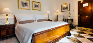 In a 5 star hotel room, the bed usually features high-quality mattresses, luxurious linens, and multiple types of pillows to ensure a great night’s sleep.
