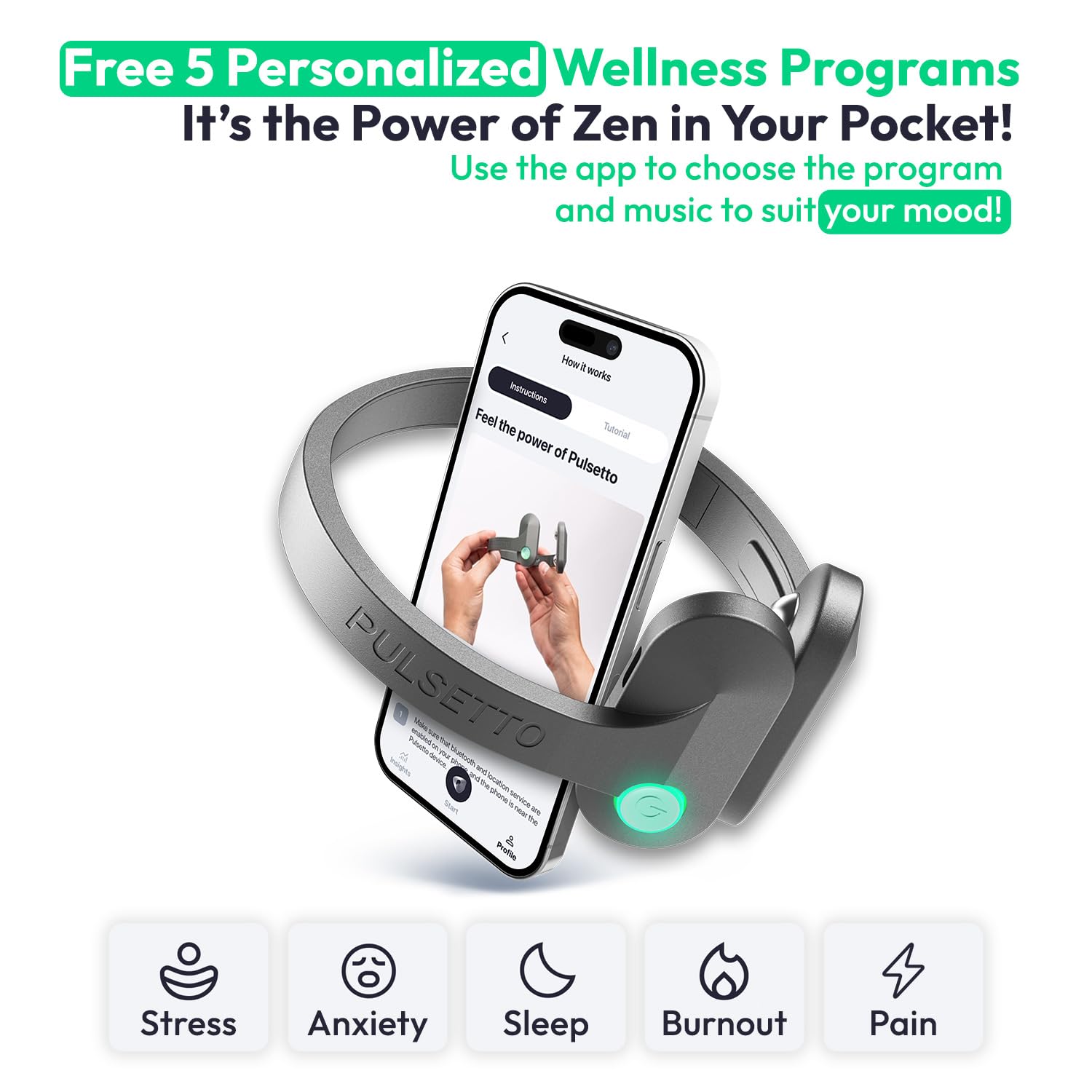 - Let Pulsetto work its magic while you go about your day or wind down at night.