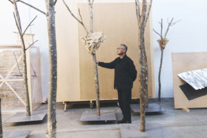 During his first visit to Maison Ruinart in Reims, the artist was struck not by grandeur, but by subtlety: morning mist settling across the vineyards, the warmth of early sunlight, and the quiet presence of birds and insects moving through the landscape. These small, almost invisible rhythms became the starting point for a series of sketches and models — what Kawamata describes as a way of thinking through the hand before building at full scale.