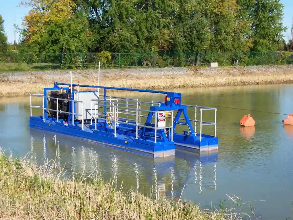 WWTP dredge systems operate through a coordinated process that combines precision cutting, efficient material transport, and controlled disposal to remove sludge effectively. The dredge positions itself on the lagoon or pond surface using spuds, anchors, or cables that provide stability while allowing controlled movement across the treatment cell. Submerged cutting heads or augers loosen compacted sludge layers preparing material for suction extraction.